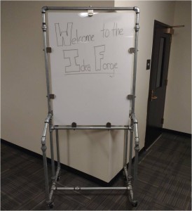 The idea for these boards actually came from the professor who directs the engineering honors program (EHP) in this hall. After some initial flushing out of ideas, I think that this should be a fun and rewarding project to work on. Additionally, I have always liked the look of the glass writing boards that were designed by students for the Idea Forge (here on campus). One of these boards is shown below. Some additional motivation for this project is that: