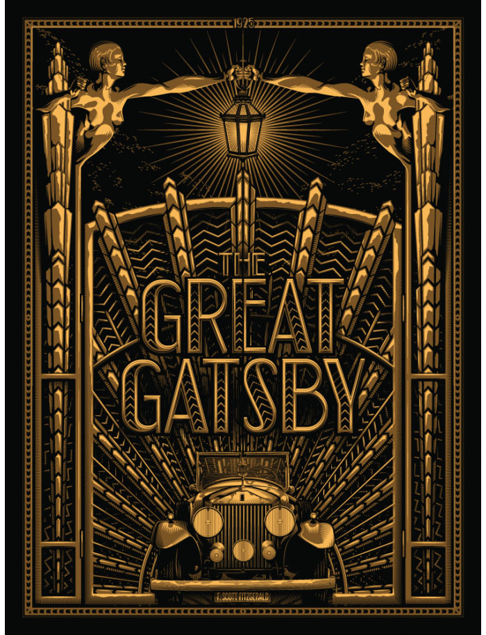 The images above depict a propaganda painting created in the dieselpunk aesthetic compared to The Great Gatsby artist rendition of a film poster. The font is very similar and this poster can be easily compared to the next few images that are created with this aesthetic in mind.
