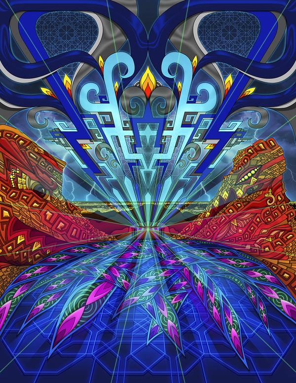 Charles, I am really happy you explained how impressed you were by how he breaks down natural looks into minute geometries. In my post I was trying to find words to explain that and you said it perfectly. There is something about repeated minute geometries used to create a bigger picture that really appeals to my eyes and experience. And nature is always onoe of the most beautiful things, so to be able to capture it in a different way and still be just as beautiful is really a feat. He is a really great artist and a friendly guy. He has a store on pearl street that is super close to school. You should go check it out. He has made some really cool stuff using laser cutters and 3D art, mixed with his digital design. I have seen a lot by Alex Grey and definitely continue to seek out his art. He is one of the best.