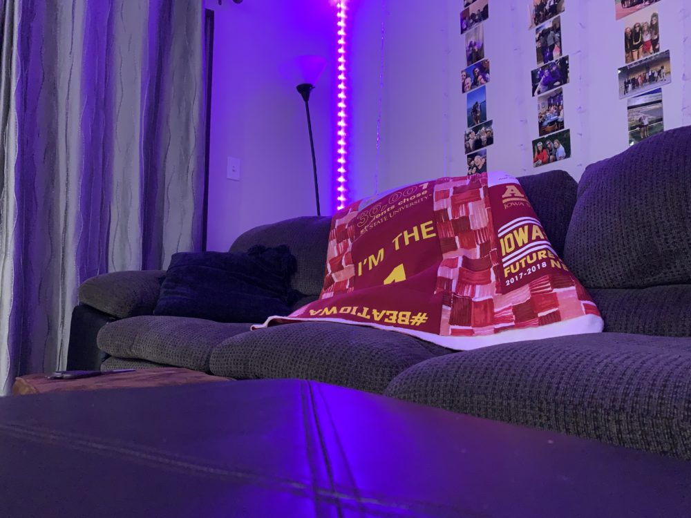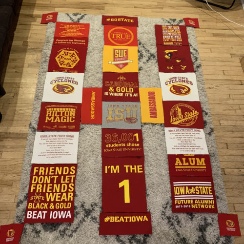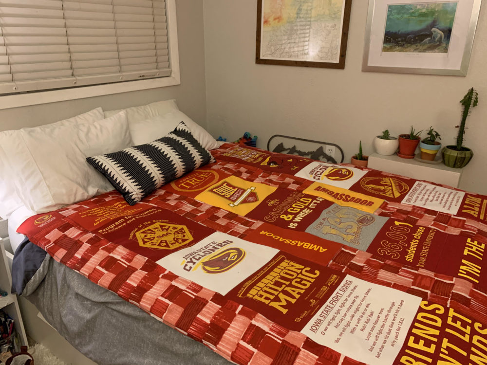 For my project, I decided on making a t-shirt quilt out of my sister’s Iowa State University t-shirts. This falls into two aesthetics that I have explored in the past. The first being the aesthetic I used for my Upcycle Project: Old School Athletics. The second is my personal aesthetic: comfy coze. Since the shirts are 4 to 8 years old and are worn, they’ve got that old school university feel. Plus the Iowa State school colors are red and yellow, which is a pretty classic color combination. As we saw in the LinkedIn Learning video “The Red Effect”, the color red can present as a fear factor when worn on sports uniforms, so it makes sense for a large university to use this color. I imagine this quilt accompanying a couch surrounded by cyclone fans cheering on the basketball team during march madness. The aesthetic has a lot of school pride, which is also depicted in the images below.