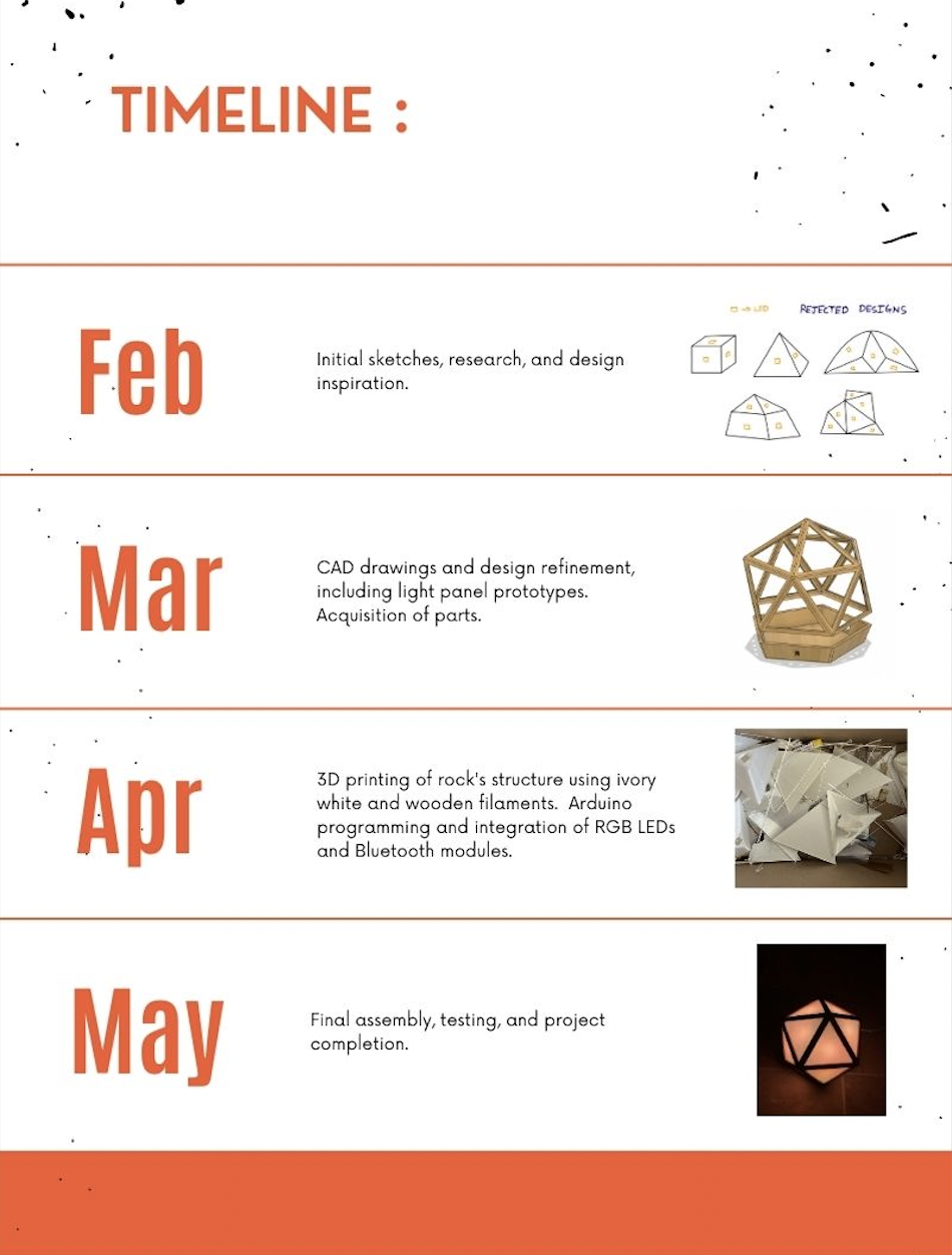 In conclusion, the journey from initial plans to the final product has been a fulfilling and enlightening experience. The initial vision aimed to blend technology and natural aesthetics to create a captivating, illuminated rock structure that would both intrigue and delight. Through perseverance, experimentation, and learning from various prototypes, I successfully crafted a seamless fusion of the natural and the technological, achieving our desired aesthetic goals.