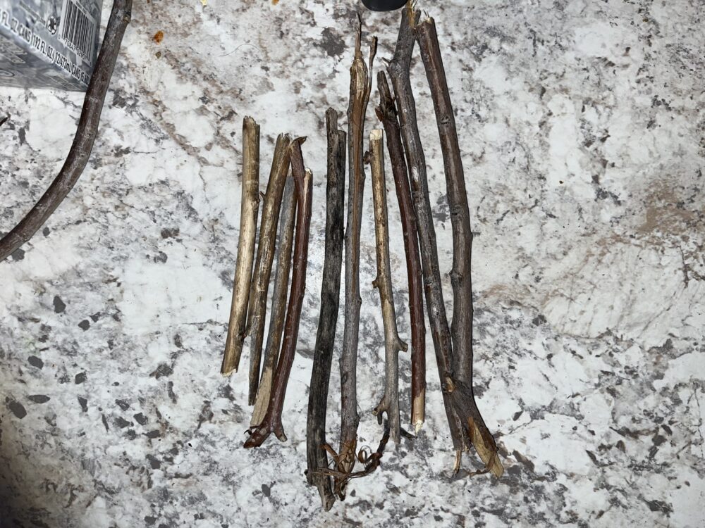 There were also plenty of sticks in my back yard, but a similar issue was ran into with finding usable sticks as the rocks. While some sticks fit one or two requirements, they would frequently miss the mark on others. This significantly prolonged the process and made it feel somewhat tedious.