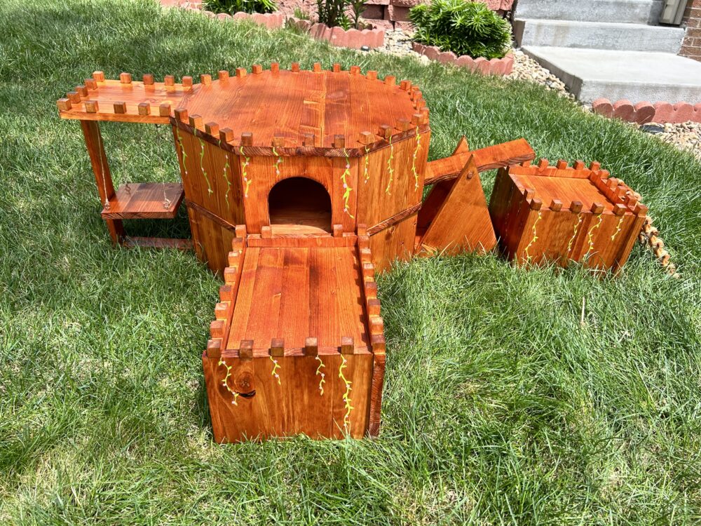 The main project was open ended except that a dynamic component was required. As someone with 8 pets (3 dogs, 3 cats, and 2 guinea pigs), I spend a lot per week resupplying food, materials, and toys. Additionally, I struggled to find quality and affordable products for my guinea pigs. Therefore, I wanted to create a custom and interactive play structure for them to hide and climb in when I take them outdoors during the summertime. The result of this project was a storybook wooden castle with 2 floors, a climbing ladder, tottering bridge, and swing. It was a tough build, but it made me more excited to take on more DIY projects for my pets in order to make more affordable and customized products for their specific needs and unique personalities.