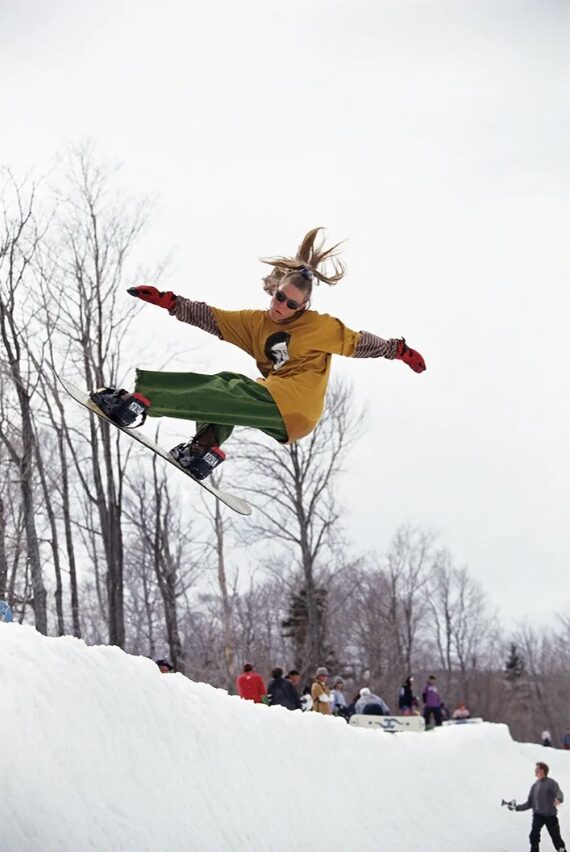 Since punk and rock music was starting to become popular around this time, I believe the music’s free, rebellious attitude inspired boarders to counter conform to the typical tight, ordinary ski uniform.