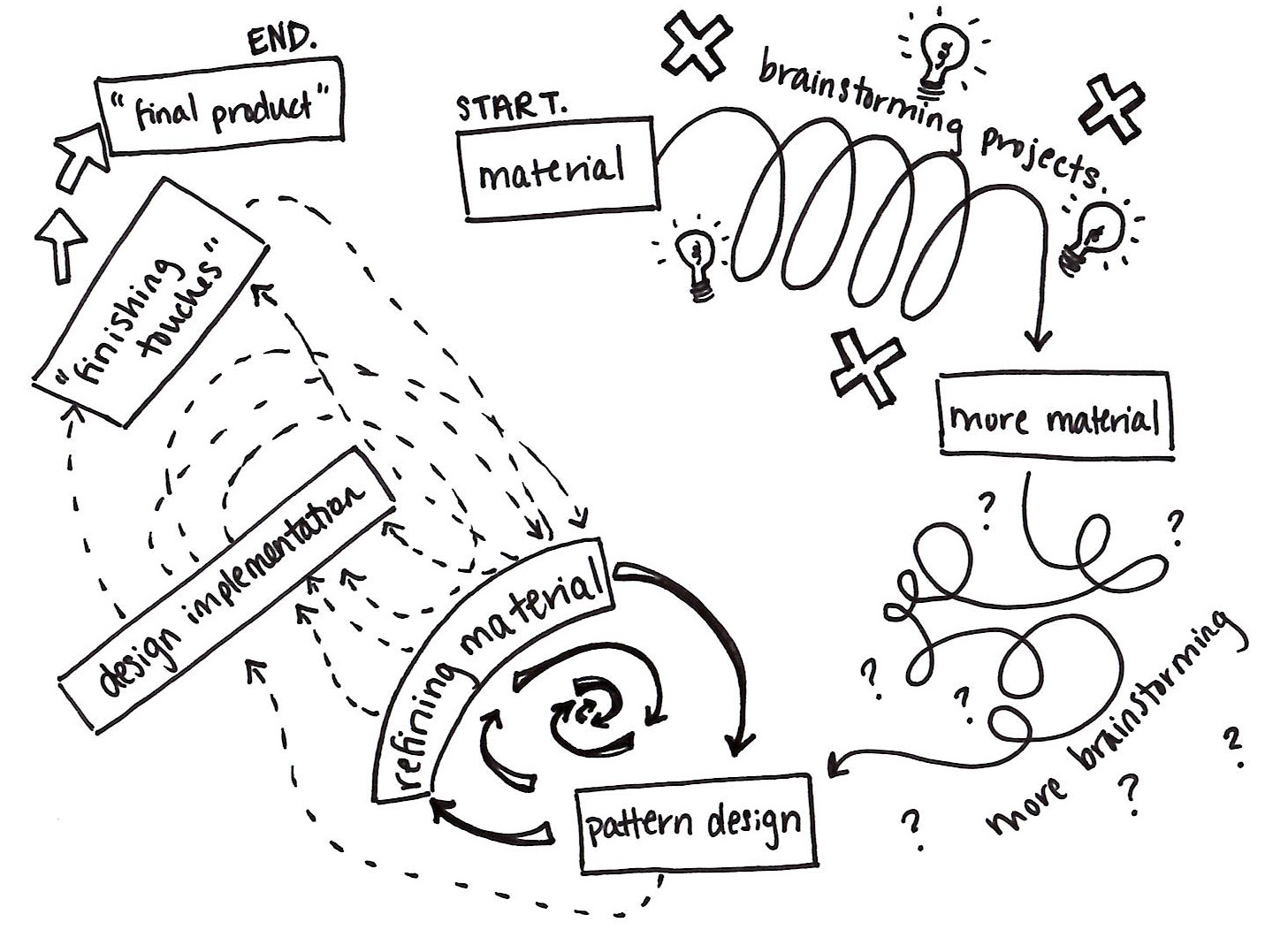In the idealized process, we started with a problem that needed to be solved, where as I began with a material I wanted to use (which, in a way, is a problem in itself but not the kind that we intended to suggest within the idealized model).