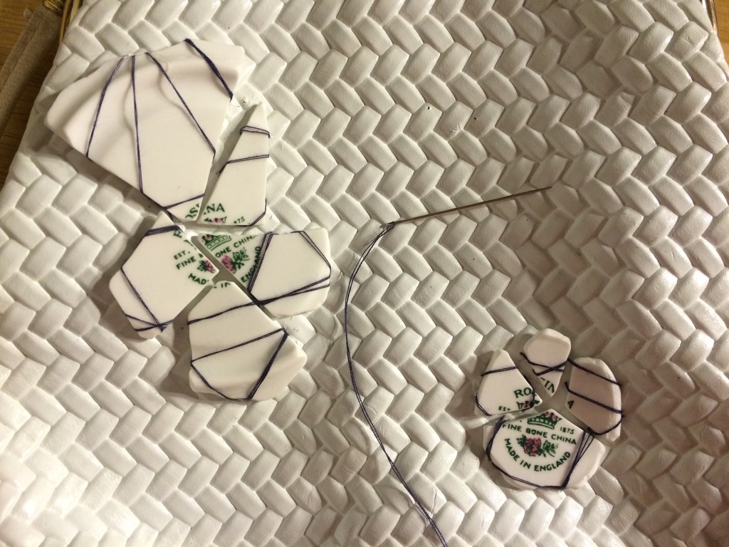 I think that it is so cool that you did not immediately throw the broken cup pieces away and wanted to put a use to them! The product also looks great – the sewing was an awesome touch and I’m not sure that I would have though of that solution.