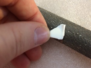 [Above left: File for rough grind. Right: Sand block for smooth finish.]