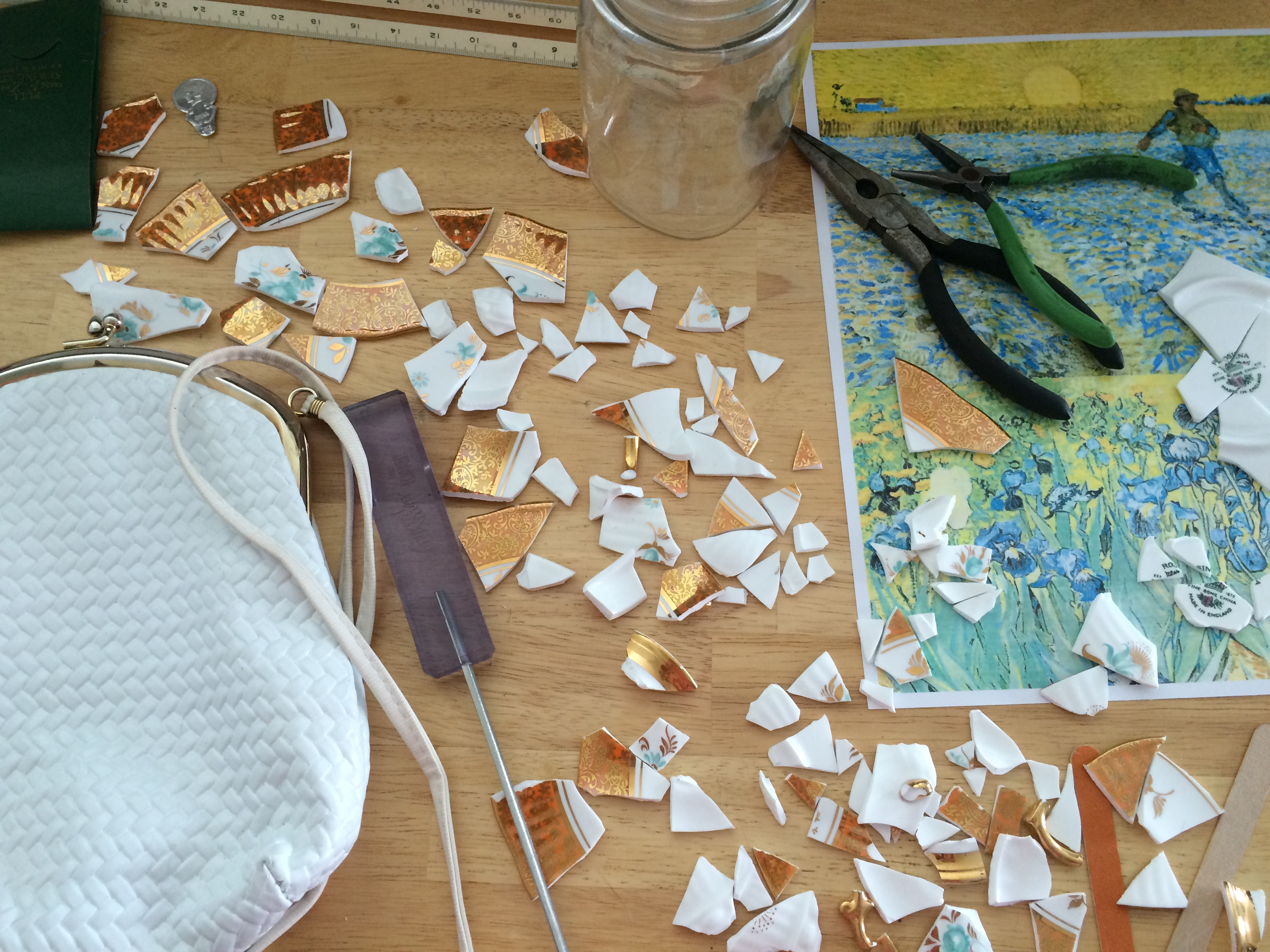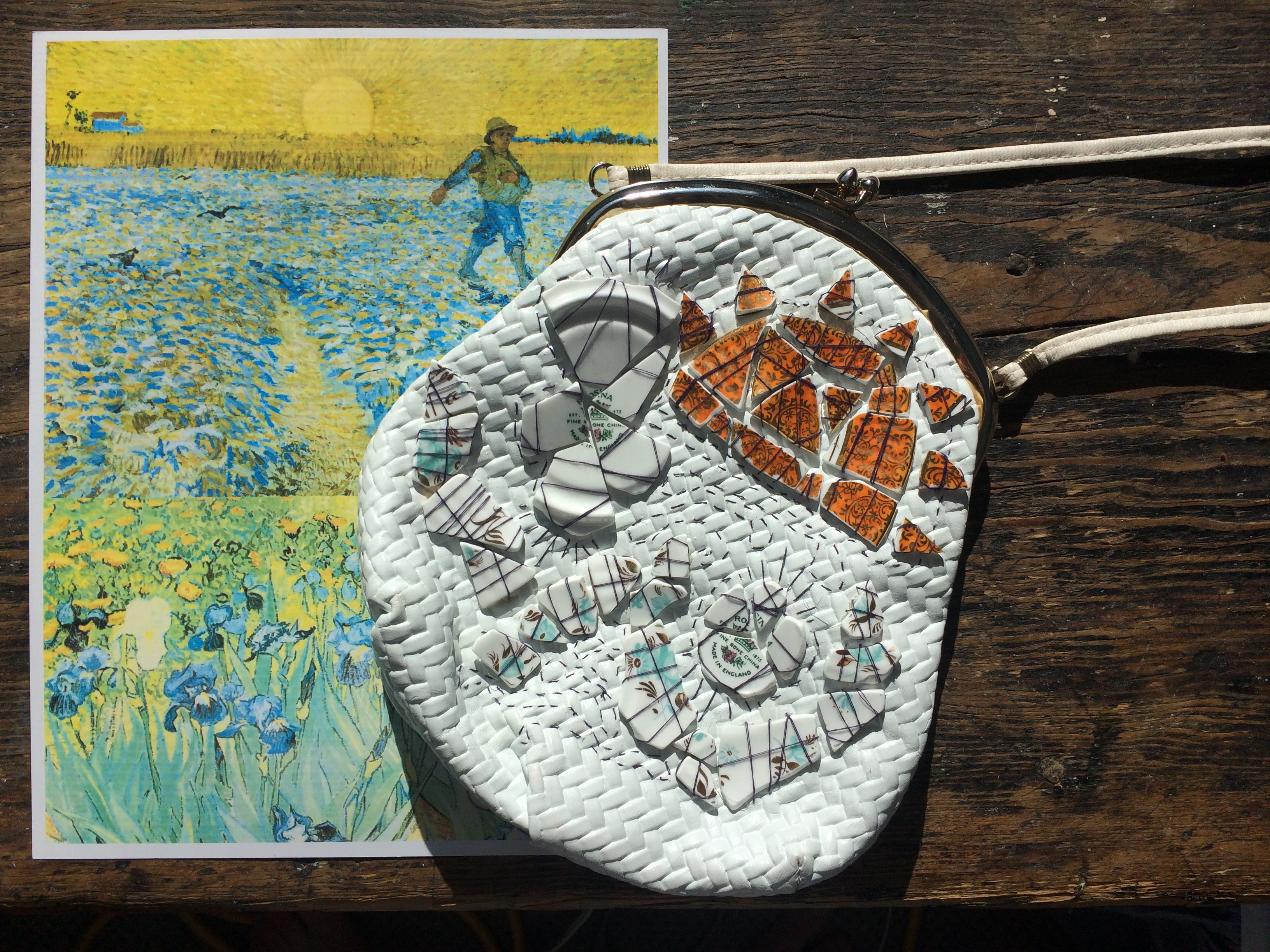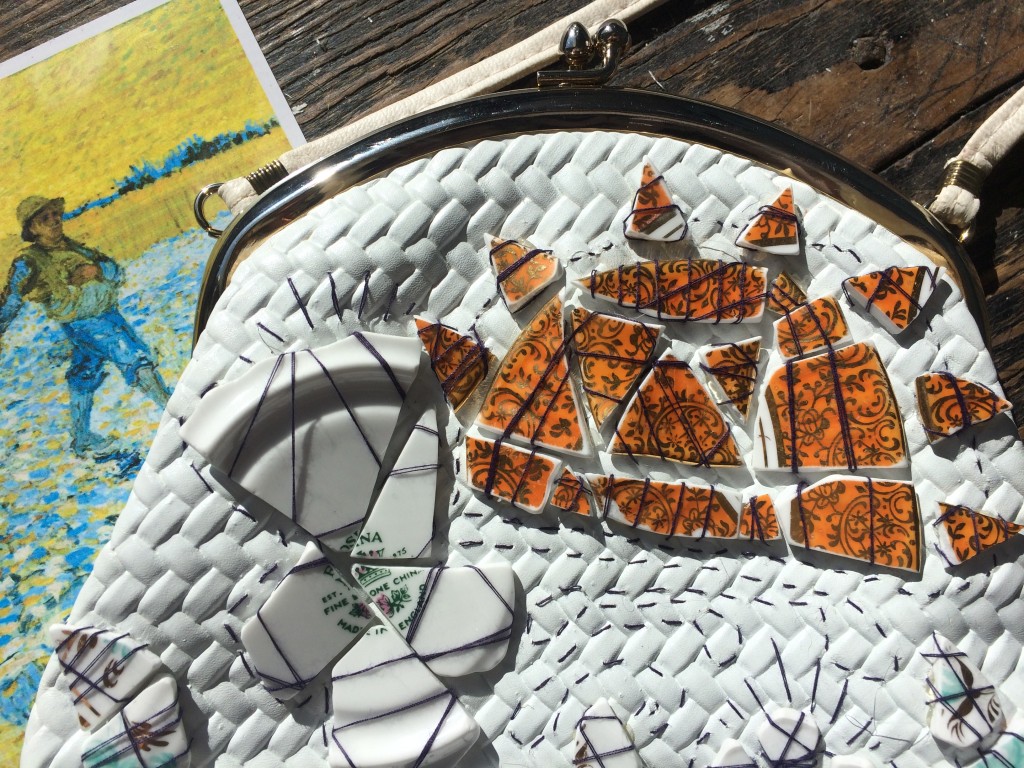 I love the look of mosaics especially made from broken ceramic. You purse turned out very well and I love the integration of impressionism. In the future, it might be interesting to use purse color that allows the ceramic to stand out more clearly.