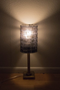 I like how even from the far back corner of the room that I sit in, when the light is lit up, it is obvious that the lamp is made out of film and you can vaguely see the images that are on the film. It looks extremely artistic!