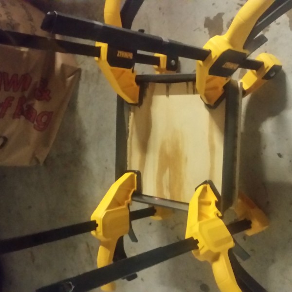As the plastic cooled I had to clamp it between two pieces of plywood to prevent it from warping. In the end the block was relatively flat, however there was a bit of warping. With the cooled piece of plastic I had to face the the sides to get it square and flat. Afterwards I sanded and cleaned the display side to remove machine marks and make it more presentable. In the end I am very happy with the outcome.