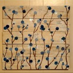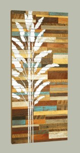 It occurred to me that the barn door itself could be a large, yet functional, piece of art. I like the rustic look of old painted wood as it makes me think that things have a past and an interesting story to tell. Additionally, I enjoy the look of trees – the sense of longevity and strength that they impart – and have quite a few pieces of art incorporating trees in my home. Combining these through the use of materials and color I hope to achieve my goal.