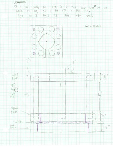 The initial sketches for my design involved a circular base with a few pipes extending upward to another circular plate which had holes to place the spices, see figure 1. After CADing up this model, I discovered that this design was not feasible and made a new design.