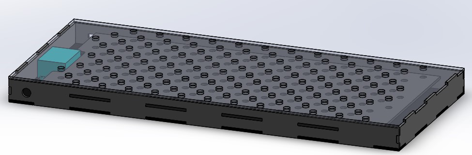 After completing the last prototype, there was not much more required to get the final design created and completed. Taking some of the fit issues I found in the prototyped designs, I finalized the CAD for the acrylic box such that it would all fit together with space for the electronics underneath. CAD images of the final design can be seen below.