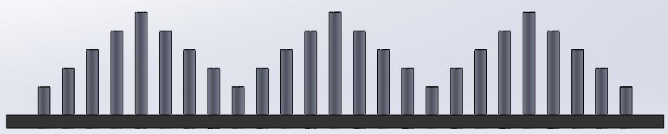 For my initial idea I came up with a honeycomb pattern with arrows cut to different heights. A rough CAD model can be seen below.