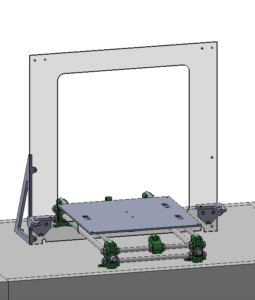 At this point, the printer’s three axes had been effectively built up on the frame, but the entire thing wobbled like crazy as the frame was only clamped at the bottom by two bolts on the Y-stage. To secure the frame I designed a gusset system using a piece of clear acrylic that I purchased from McGuckens. I simply laser cut two triangular pieces for the sides and a rectangular piece to go across the top for stiffness, along with two 3D printed brackets which I could bolt to both the stand and the gussets. I really liked how the clear gussets look, because they aren’t very obvious from across the room, and they hardly show up in any pictures. When I finally bolted to the baseplate, the printer was really solid and hardly rattles at all when I shake it around.
