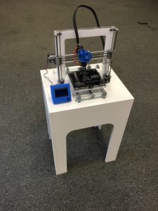 3D printing has recently exploded as both an engineering technology and commercially-accessible tool, and I wanted to explore how I could make a custom-built 3D printer part of my home. Unfortunately, many DIY printers and kits tend to be messy collections of wires, motors, and metal, which would look out-of-place in many people’s homes (especially for folks without a dedicated workshop area). My challenge: build a 3D printer (from scratch) and implement modern home aesthetics to create an attractive and functional printer that would fit into a living room as easily as it would an engineering workspace.