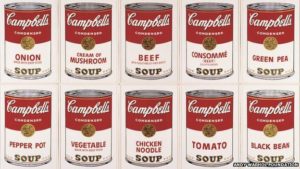Pop Art of the early 1960’s is associated with artists like Andy Warhol. Pop Art moved away from modernism, which favored themes of classic history and morality. Instead Pop Art favored common objects and everyday people. Artists drew inspiration from pop culture and mass media. Hippies in this time did not care about material things and the importance placed upon them. Pop art was a sort of reaction to this way of thinking.