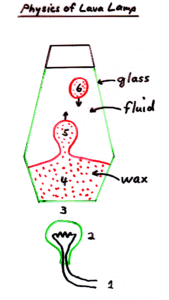 This describes the physics of a lava lamp showing how the two liquids interact with the heating element.