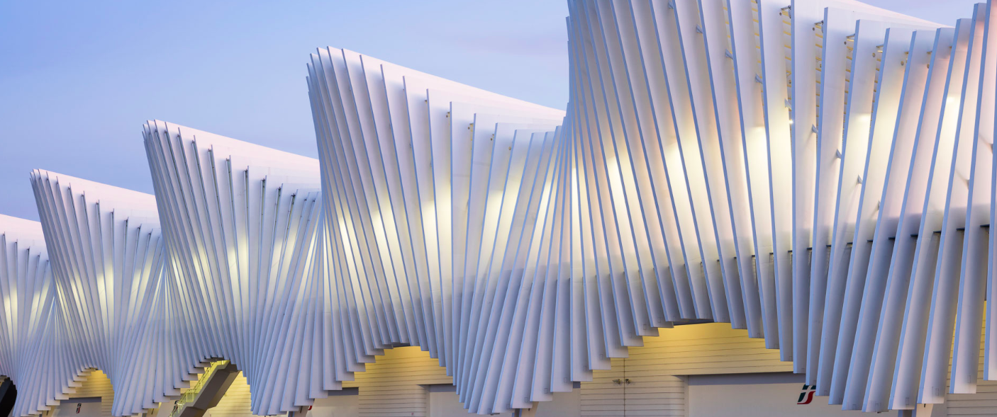 The below building is a train station in northern Italy which shows similar features of Calatravas signature white concrete rib design alone the entire feature. The natural flowing mimics waves in the sand and provides a welcoming feeling when approaching the building.