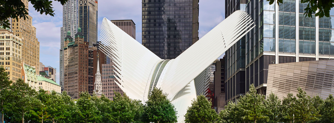 The new transportation hub located in the World Trade Center complex is Calatrava’s most recently completed work. This building demonstrates the smooth flowing white concrete signature design with the incorporation of the ribcage like structure. Above the ribcage appears to emulate a birds stretching its wings which fits very well given the location of the building. The building is symmetric across a diagonal axis of the roof with the extended wings, and creates a large open space atrium within for all users to appreciate. There are several views of the new transportation hub below.