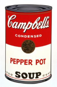 The sub-genre of pop-cult minimalism can be most easily traced to the emergence of Pop Art in the 1950s in England and America. Notable figures such as Andy Warhol and Eduardo Paolozzi pioneered pop art by taking culturally relevant imagery—often of a commercial nature such as advertisements or product designs—and putting a critical spin on the subject matter. Pop art of the ’50s was largely considered a reaction to abstract expressionism from the ’30s and ’40s, a trend of surrealism and spontaneity in art that included splatters, geometry, high-contrast reductionism, and other styles often vaguely included in the concept “modern art.”