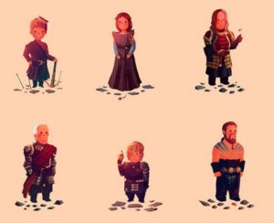 But beyond the high caliber of these productions, Olly combines this artistic style with his ability to re-imagine popular culture characters and stories as something else, often presenting an image starkly contrary to the actual content. For instance, his series on Game of Thrones portrays barbaric players (including rapists and assassins) as lovable children’s book characters. These pieces are much in the vein of his Pokemon miniatures, but with far more adult content behind them. This presentation—beyond some academic claim that it makes us “rethink” something—simply imbues the subject with an endearing quality likely to have a profound effect on audiences already fans of the reference material. Nostalgia, lovability, even a sort of poetic tragedy can be conveyed in this manner, the aesthetics clearly expanding (or in some cases, redefining) the emotional impact of the work. In this case it’s not literally a second image within the main one, but a contradictory emotional image understood by the observer. This sort of artistic irony is a direct application of “classical” pop art styles from decades earlier.