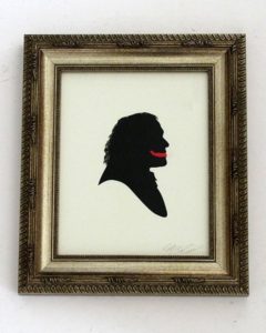 A particularly unique exhibit of Moss’s work featured hand-cut paper silhouettes of pop-culture characters, from Super Mario to Saved By The Bell. One of the most striking images in the gallery was Heath Ledger’s Joker from The Dark Knight, well regarded as one of the most haunting and memorable portrayals of a villainous character in film. Of over 200 finely-crafted silhouettes, this was the only piece to contain a color other than black and white… Olly added a slash of red to the Joker’s face, the iconic “smile” that asks of us, why so serious? He could have left that part out. The image is entirely recognizable without that bit of color; Olly’s ability to convey identity with outlines and B/W detail is unquestioned. But he broke the style of the exhibit, created an exception in this aesthetic, almost suggesting that the ideal itself had been scarred, had been damaged. Or perhaps to speak to the tragedy of Ledger’s death following this role, that this was the only subject who had been killed by the character, the image, he took on. As observers, it is up to us.
