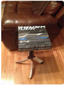 I think this is an awesome idea! I love seeing interesting furniture like this in places like sports bars. If you’re able to successfully pull this off, I think it will be a great project. I’m intrigued by the picture of the coat rack made out of goalie sticks. It’s made so simply, but it looks really good. If you get enough sticks, maybe you could create something more than and end table. Hockey stick furniture is a really great idea, and I think you could push it even further.