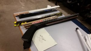 I started the upcycle project thinking I would carve a specialized and unique hockey stick out of wood. However, when I Googled, “Homemade Hockey Stick,” I was inspired by what I saw. Ever since then, I’ve been working on making something out of broken hockey sticks. The key constraint has was the number of sticks I could collect, as shown in the design loop depicted in the following image. It was pretty tough because most of the donated broken sticks were broken on the shaft, so they were usable in varying lengths. I also collected 4 sticks that broke on the blade, which I taped over for structural integrity and cut at the longest possible length as one was also broken high on the shaft.