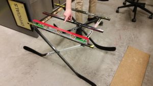 I really like the final product of this, it came out really well. I like how the design is very symmetric in shape. it is cool to see it out on the ice as well in its natural habitat. It would be nice to see the pucks incorporated like originally intended in the design. It would be cool to see the update! Overall a nice use of some hockey sticks. Did you have to try and get some from fiends to collect 4 worth cutting?