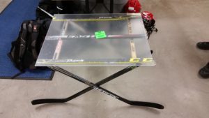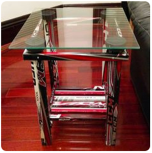 Very cool project. I really like when people recycle hockey sticks. I used to have a neighbor who would make picture frames out of old hockey sticks. Imagine if you had a TON of hockey sticks. You could make anything! It seems like you used the hockey sticks that you received very well and came up with a very good project. I think your table will come in very useful in the future. Hope it stays with you for a long time and you continue to make furniture out of hockey sticks!!!