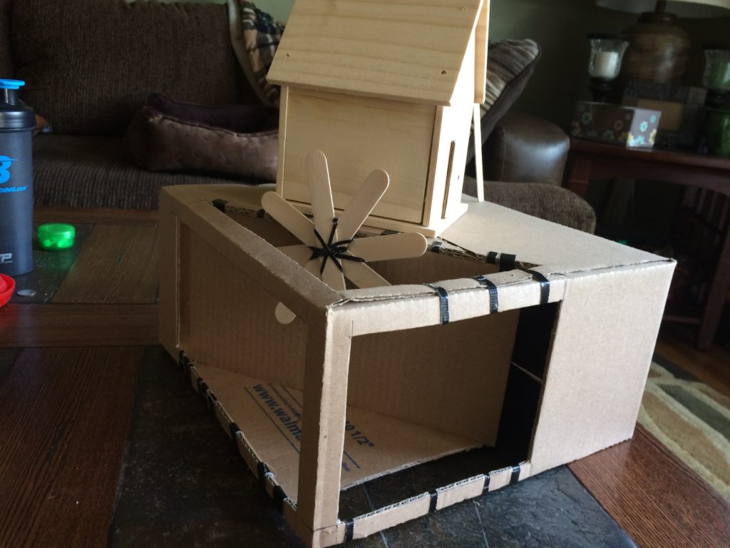 This looks like a really cool project! Once it’s done, is the water wheel going to be functional? I like the blend of the cottage, which usually has a calm, country, rustic look, combined with steampunk, which is metal-heavy and very mechanical. It seems like it will be a very unique combination. Also, will the wind mill be tied to the water wheel so they will spin at the same rate? Overall, great job!