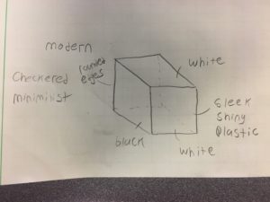 The modern design is the design that I was most drawn to and the one that I wish I had considered earlier. I imagined it made out of sleek shiny plastic in which one would be able to see a foggy reflection of themselves. All of the corners would be rounded and while made our of inexpensive materials it would give the impression of being expensive. I would incorporate internal hinges so the outside of the box would be completely smooth. I would checker the box and have each adjacent side of the box be alternating either white or black.