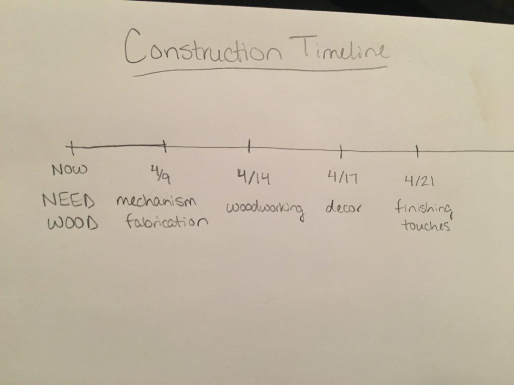 My construction timeline for creating my Japanese jewelry box is linear and pretty simple. For this weekend, I intend to finish designing and fabricating the mechanism for unlocking a secret compartment in the box. By next weekend, I plan to have the woodworking finished. This includes cutting each side of the box to size and completing the carvings on each side. By early the following week, I intend to have the outer finishing, such as sanding and painting as well as interior decorations completed. Finally, that weekend is my intended deadline for full project completion and functionality inspection.