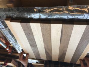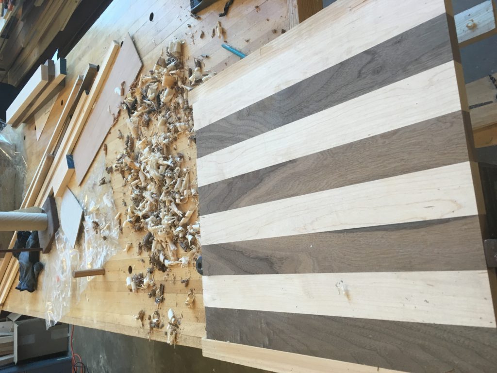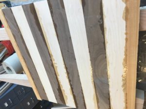 I began by resizing the boards to 2.1×18 inch. Then I used a table router to ensure my edges were straight and had a uniform width. This was challenging, as maple can be difficult to work with. Next, I glued them together in an alternating pattern and let them sit for 24 hrs.