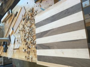 The chess board is in the initial stages of the build. I have acquired the wood, brought it to the Makerspace, and have started to build my product. I began by inspecting the maple and walnut wood for any imperfections, ensuring it would suffice for my chessboard.
