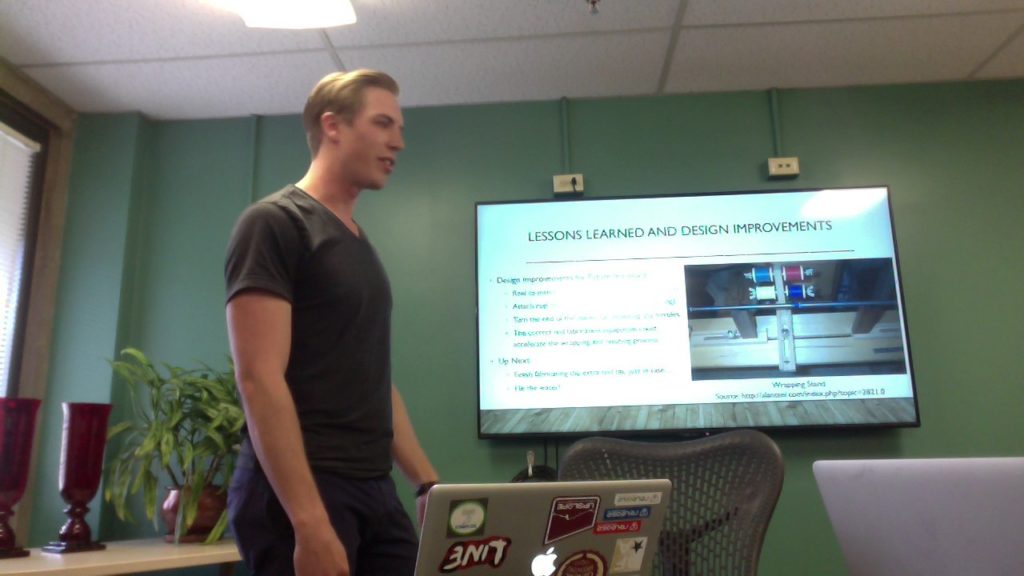 • Love the way that the rod turned out. Looks like you spent lots of time on this project.. 40 hours! How long do you think it would take you to do this project again? I thought the process you showed us with finding the spine of the bamboo was interesting how you had to keep turning it and bending it until you found the correct way for it to go. I also love the way the epoxy covers the strings that wrapped around the metal things. The epoxy looks really nice with the clear and shiny, but smooth texture. How does the process work once you’re at the lake? Do you just run the string through? Great job Jeremy!