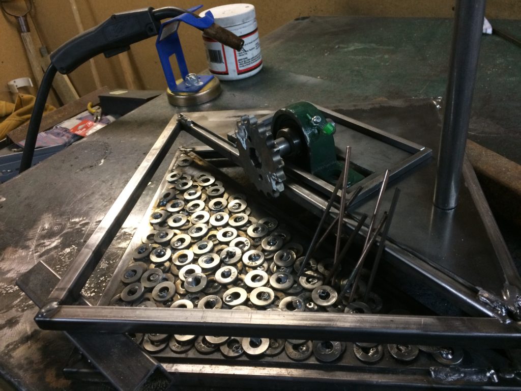 The washers of river rock are super awesome on this project. The polishing finish of the washers is really great and totally adds to the aesthetic. I am curious as to where you are welding this? it is super cool to see that the wheel can spin. this will be cool to see when both plates are put together and the whole scene is completed. This feels like a halloween scene to me and a poster with this similar feel behind could help the overall feel of the aesthetic and complete the scene. Nice work with the overall project and the presentation of how it all went together.