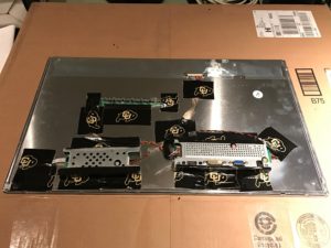 Similar to the design process my first step to actually fabricate this mirror was to buy a computer monitor a remove the plastic bezel from it. After doing this I used duct tape to secure the loose electronic components that were originally held in place by the bezel. Once I had the dimensions of the monitor I used a laser cutter to cut the acrylic two-way mirror exactly to the same size.