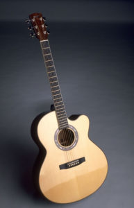 The first design is the steel string acoustic guitar. It’s a design that produces a more metallic sound due to its strings. It has a hollow center and a curvy shaped body.