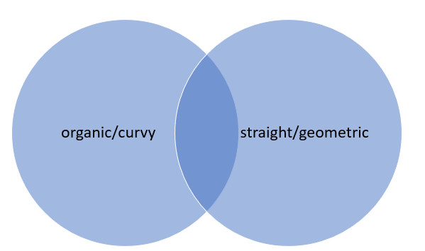 Modernism is the aesthetic that I will dive into here as it has always perplexed me. I tend to have an association between modern and money, I infer that this stems from the fact that modern homes always seem to be unachievably expensive and modern art almost always looks very well put together in a similar way. I have always thought that modernism in art or architecture was always able to be broken down by thinking of multiple Venn diagrams with distinct options and overlapping portions. That image seems very vague so allow me to break down what I mean. The first Venn diagram I focus on is shape.