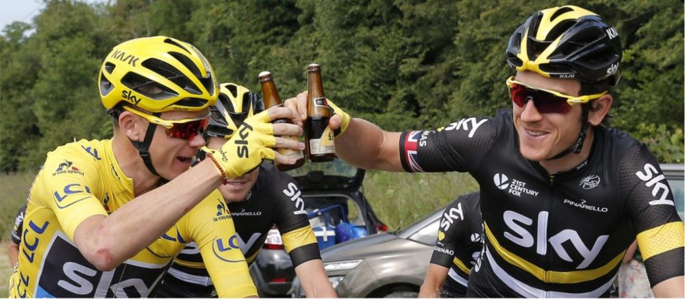 Team Sky with a celebratory beer. Image obtained from welovecycling.com
