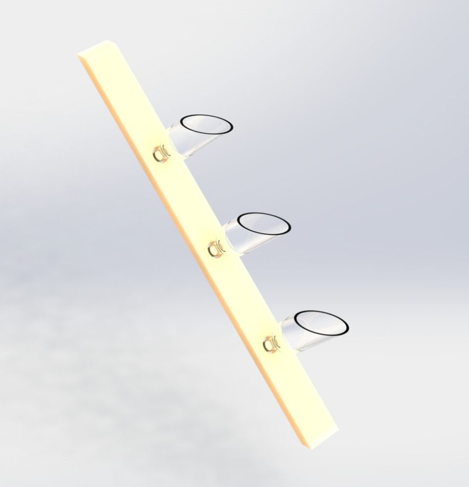 I am hoping to cut the wine bottles diagonally and then mount them on a diagonal piece of wood onto a wall. This will allow me to have the plants growing out of a horizontal surface that is basically just an ellipse rather than a circle. A concept render of this idea is shown below: