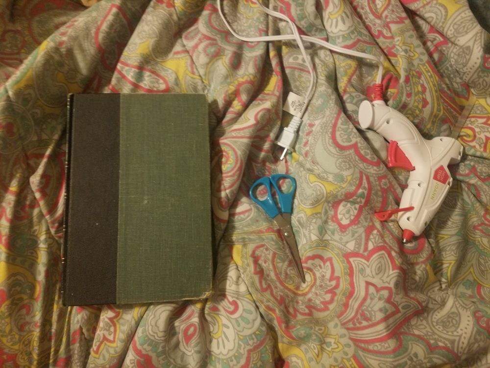 I gathered some scissors, my book, and my trusty hot glue gun and got to work.
