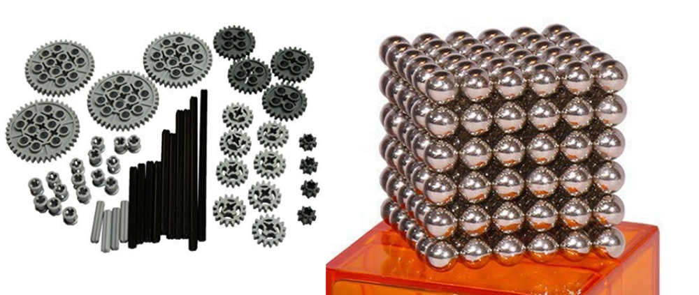 I anticipate the mechanics aspect of this toy to be the most challenging and time consuming. First, I will prototype the ring movement with a LEGO gear set, to get a better feel of how it will all come together. Next, I will add small neodymium magnets centered at the bottom and top of the outer and middle rings’ slots, so that they will “snap” into position and align the buttons. Precision here will be important, as I will need the magnets to just barely not touch each other to achieve maximum force, and also to ensure the buttons end up vertically aligned and not slightly askew.