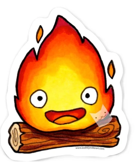 Credit: https://b2kawaiigiftshop.com/products/calcifer-howls-moving-castle-sticker and https://www.pinterest.ca/pin/80290805837190946/
