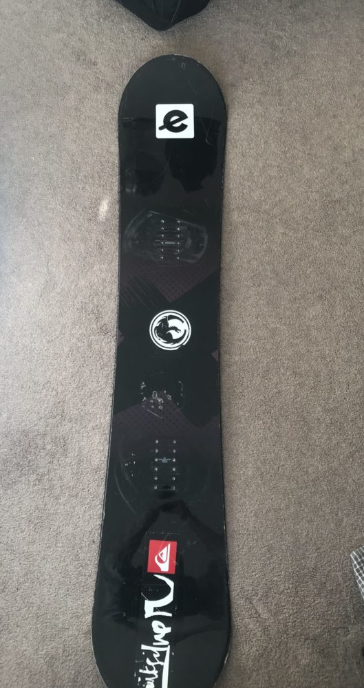 So I began to work on the aesthetic, I started with an old snowboard I had lying around to use as a base. I removed the stomp pad and sanded down the worn and bumpy parts.