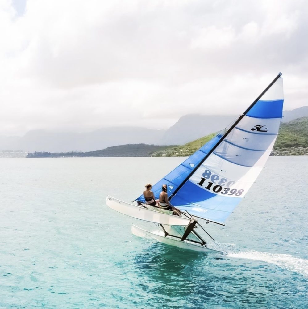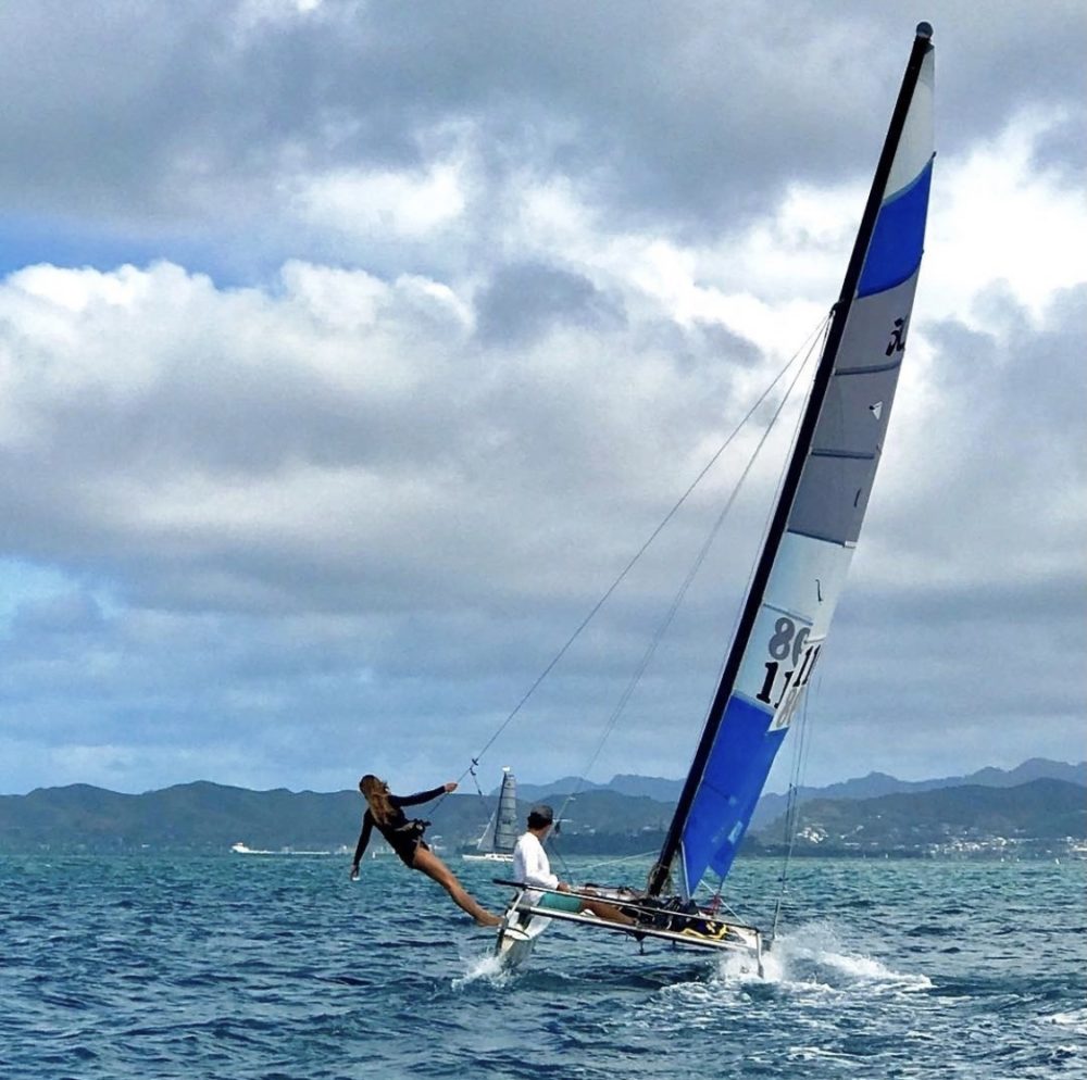 The greatest part about sailing and arguably the reason it is still so popular is the everything people love about being on the water without any of the crazy loud noises you get from a power boat. From personal experience, I am absolutely in-love with how quickly you can be traveling on the water without any sound! Look at the picture above, what they are doing is called “flying a hull” and it’s when you’re obviously on one hull and you’re using your body weight to counteract the wind. This is one of the most surreal experience one can every experience. In this moment all you can hear is the sound of the wind and the boat breaking water and when you turn around and look behind you you can see directly down into the water and it is absolutely amazing.