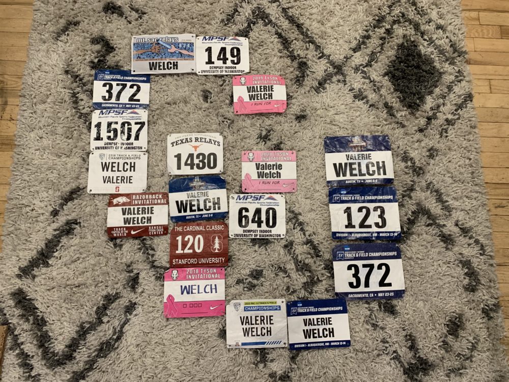 I also still need to figure out how I am going to leave space for the bibs I will receive throughout the rest of this years season. I think this may contribute to my decision on adhesive type. Overall, I am excited to see this project come to fruition. I am excited that I can display some of the keepsakes I have from my track and field career and not keep them stored in a box anymore.