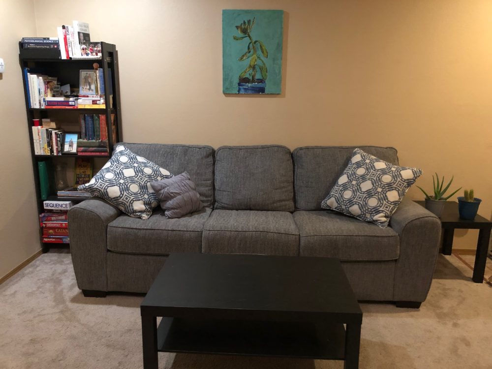 I chose the modern aesthetic for my upcycle project because it’s an aesthetic that I’m striving for in my own living space. If you walk into my living room you’ll see a speckled grey couch with blue accent pillows, dark finished wooden coffee and side tables, a dark brass fireplace toolset, a painting of a succulent with a textured teal background, and a bookcase filled with an arrangement of books, photos, and knick-knacks. While decoration and furnishing is still a work in progress, the space currently contains a mixture of grey, black-brown, and blue-teal colors dispersed throughout. It also has a variety of wooden, textile, and metal features, adding dynamic through differing materials and textures. As I continue to add to the furnishings and decor in the rest of my home, such as my mostly bare dining area, I’m hoping to build off of the modern-like aesthetic that’s already making it’s way through my house.